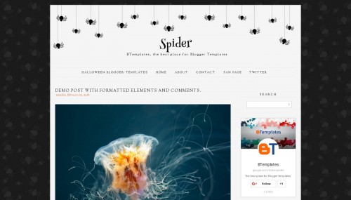 Spider is a free blogger template with 2 columns, seo friendly, right sidebar, an exclusive design for Blogger and a background pattern. Excellent template for blogs about animals, halloween, home and decoration or kids. Download Spider for free in BTemplates.