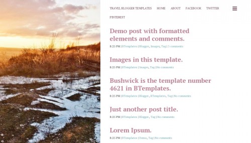 Bushwick is a free blogger template adapted from WordPress with 1 column, responsive design, minimalist, footer columns, related posts support and simple look. Excellent template for blogs about to write a diary, photography, a personal portfolio site or travel. Download Bushwick for free in BTemplates.