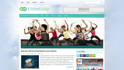 FitnessWp is a free blogger template adapted from WordPress with 2 columns, responsive design, right sidebar, fresh look, ads ready, footer columns, slider, social bookmarking icons, posts thumbnails and tabs. Excellent template for blogs about entertainment, family, health and beauty or sports. Download FitnessWp for free in BTemplates.