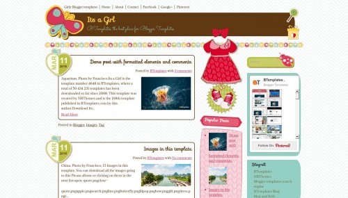 Its a Girl is a free blogger template adapted from WordPress with 3 columns, responsive design, right sidebar, fresh look, rounded corners, a background pattern, well designed threaded comments, cute design and floral motifs. Excellent template for blogs about business, crafts, to write a diary, education, family, fantasy, fashion, health and beauty, kids, love, nature or people. Download Its a Girl for free in BTemplates.